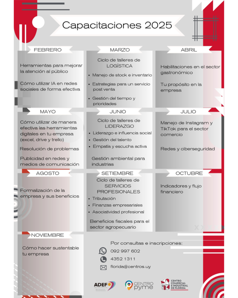 Este cronograma intenta abarcar de manera integral las necesidades de formación más solicitadas por las empresas floridenses y otorga herramientas útiles para una gama de tópicos esenciales.