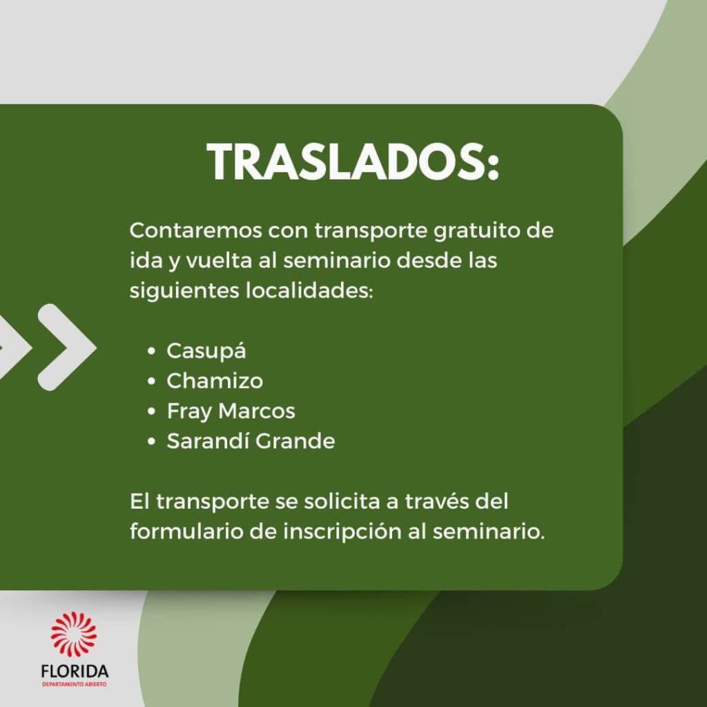 Se ofrecen traslados gratuitos de ida y vuelta desde Casupá, Chamizo, Fray Marcos y Sarandí Grande. ¡Solicita tu traslado antes del mediodía del jueves 4 de abril!